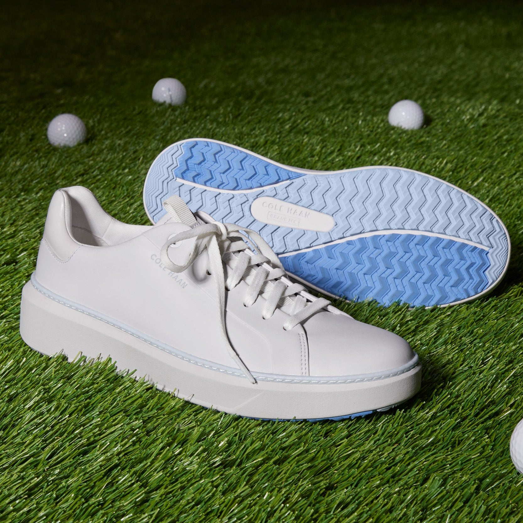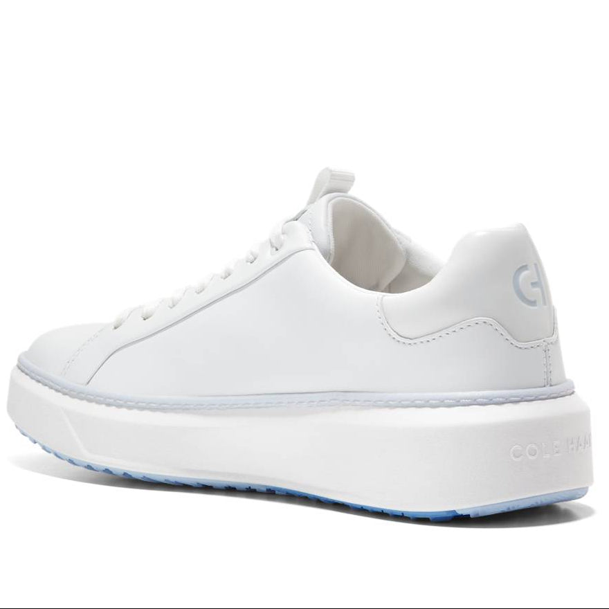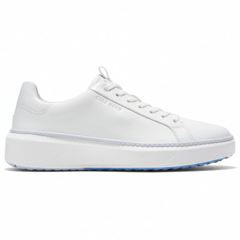 A pro-worthy golf shoe built on a woman's last: GrandPrø Topspin Golf in waterproof leather with sealed seams, a cushioned footbed with added padding at its heel and collar, plus a rubber outsole that equals the traction of old-fashioned spikes.