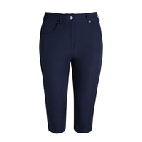 Finishing just under the knee, hemmed and split at the side seam, our g.Phoebe pedal pushers are designed for comfort with 4-way stretch from the lightweight performance fabric blend, a fit that gives excellent freedom of movement through your every round. In dark and bright plain colours and eye-catching prints, there is sure to be a pair of these short golf pants to suit every taste. These pedal pushers have a rhinestone-decorated button and studs, a convenient tee pocket, two front and two back pockets, the right of which has a silver lurex Glenmuir Lady embroidery.