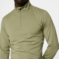 Quarter Zip with Stay-Down Puller: Facilitates adjustable ventilation and a secure fit.