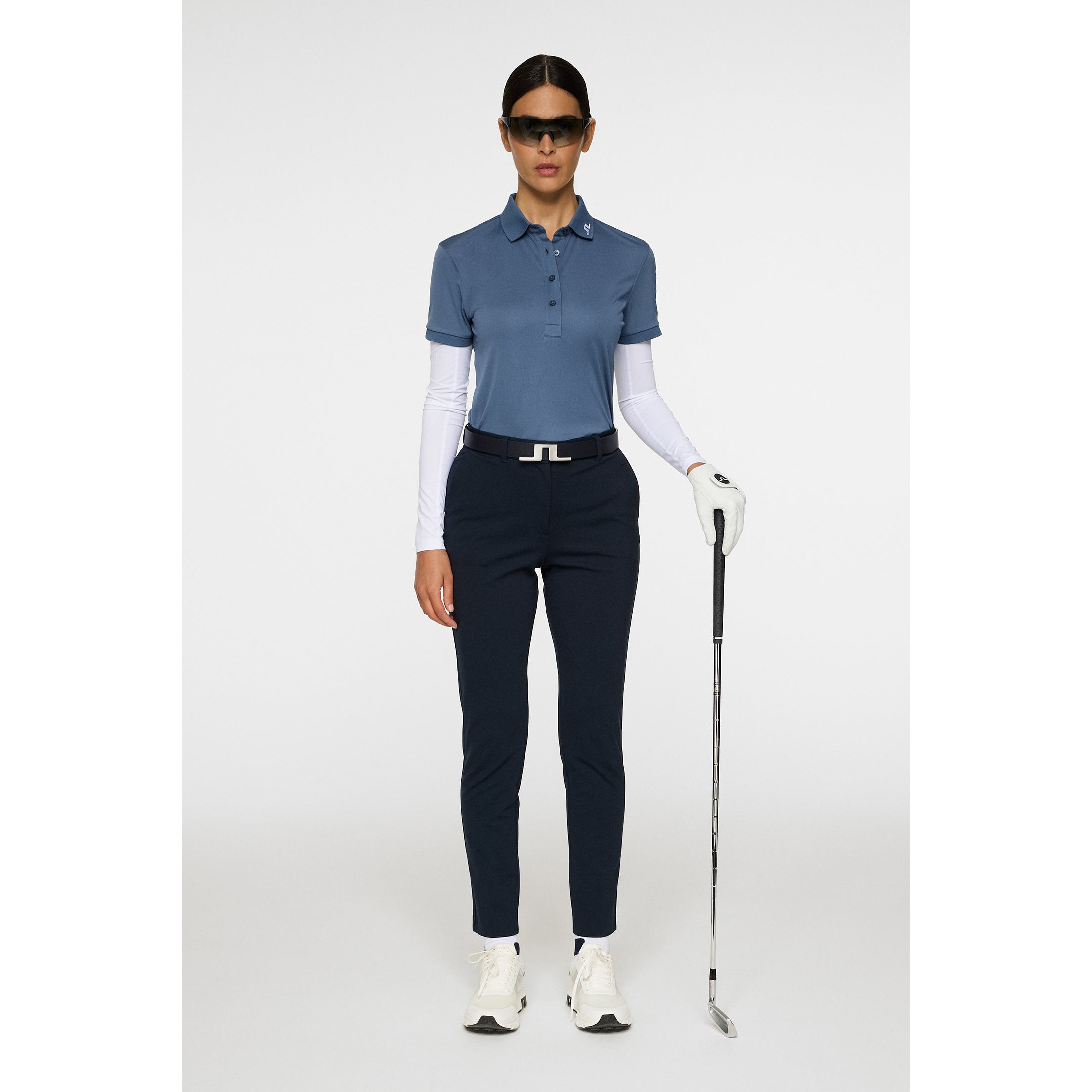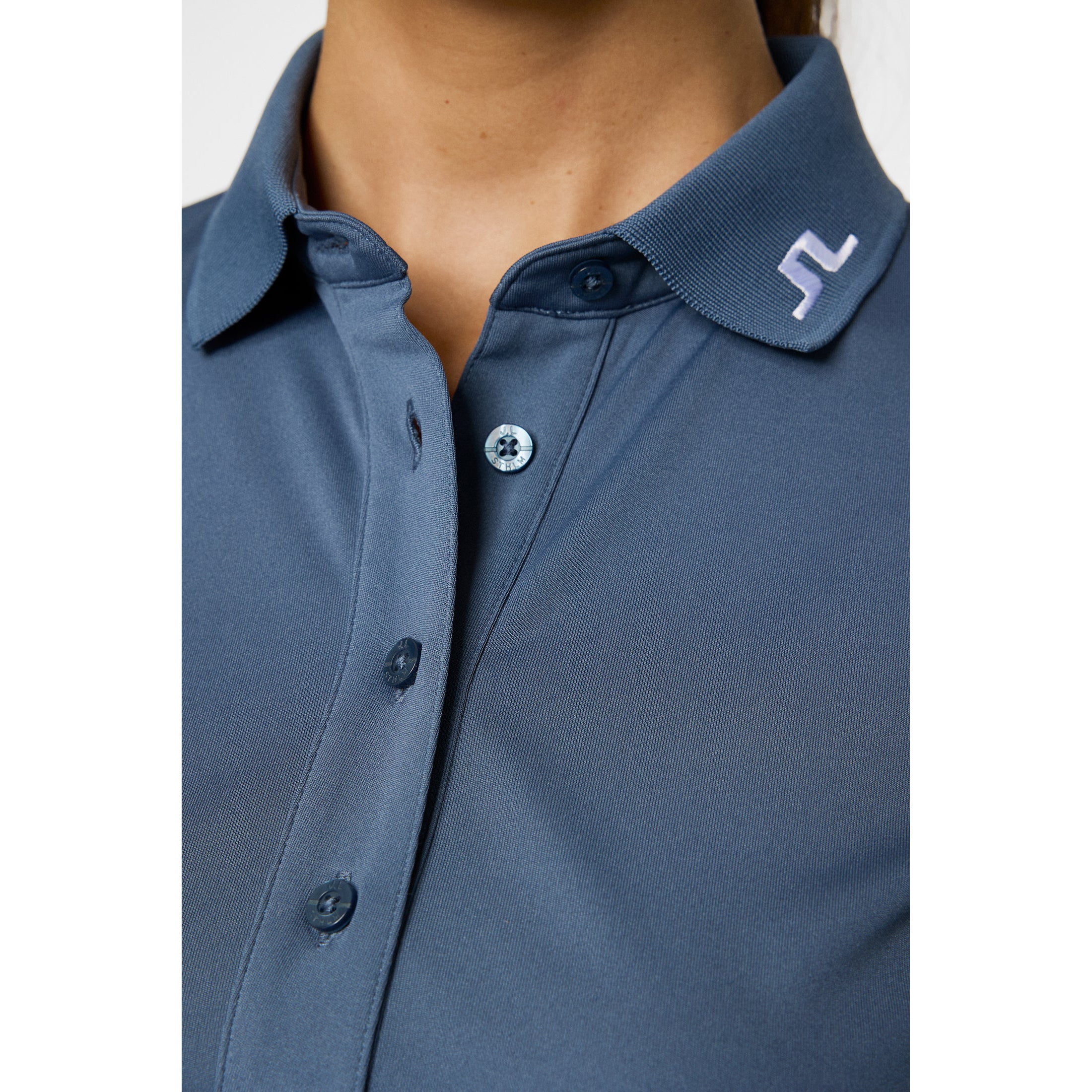 Fast-Drying Fabric: Helps maintain comfort by keeping you cool and fresh throughout the day. Moisture-Wicking Technology: Pulls sweat away from the skin for dryness and breathability in warm conditions. Technical 4-Way Stretch: Supports a full range of motion with a flexible, flattering fit. Bridge Embroidery at Center Back: Offers a signature design detail that adds to the refined finish. J.Lindeberg Embroidery on Sleeve: Delivers subtle branding that complements the clean look. 4-Button Placket: Provides adjustable coverage with a tailored, feminine shape. Rib Collar: Holds its form to maintain a polished and structured appearance.