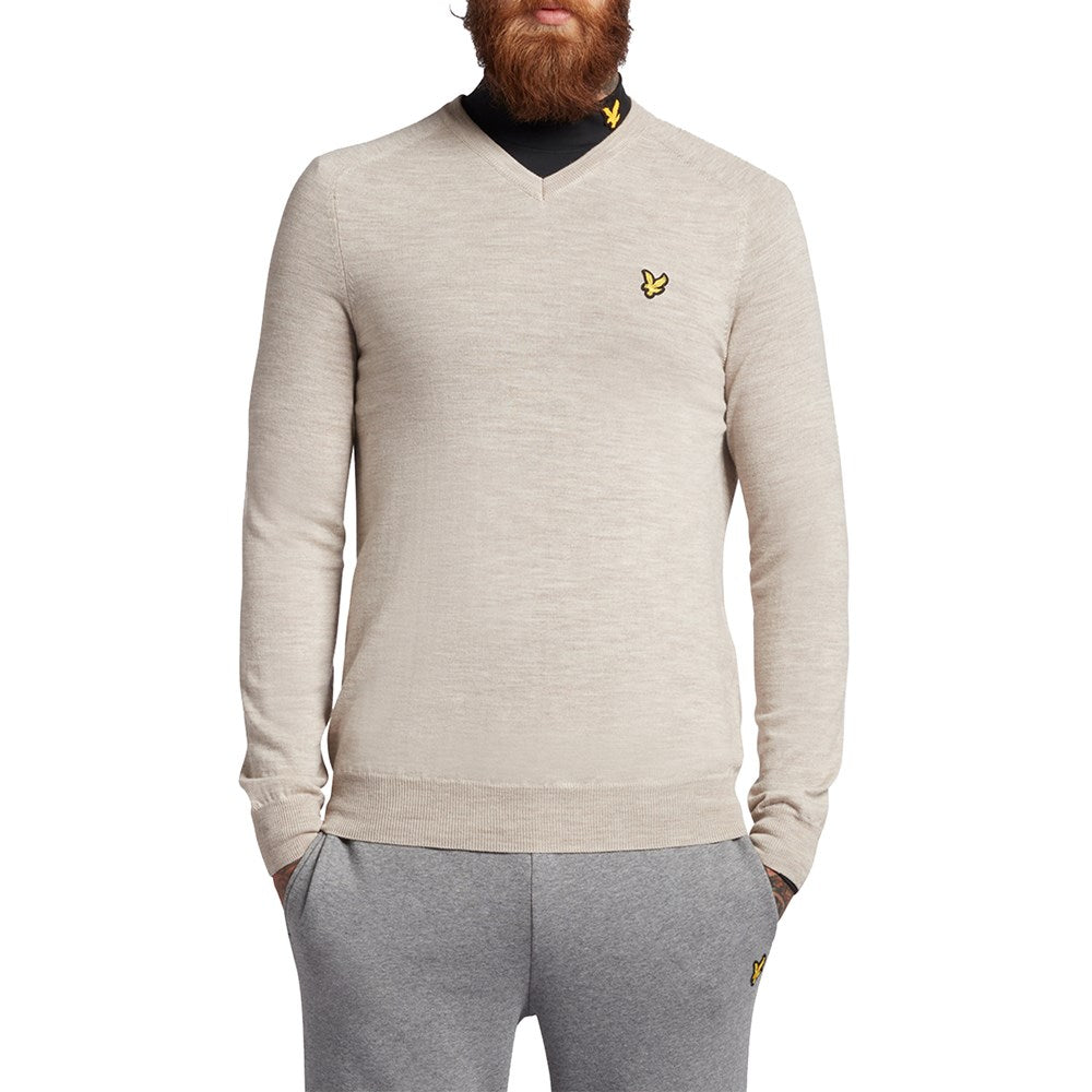 Ensure comfort and style while you're out on the golf course with the Lyle & Scott men's Golf V-neck Jumper. Made from a comfortable Merino wool, this men's jumper is a must-have for your selection of golfwear.