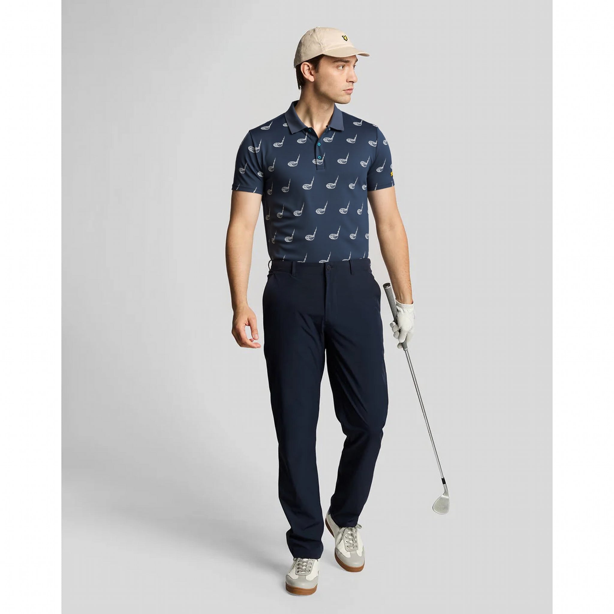 Refined Detailing Finished with a classic three-button placket and a subtle micro golf club print for a distinctive, elegant touch.