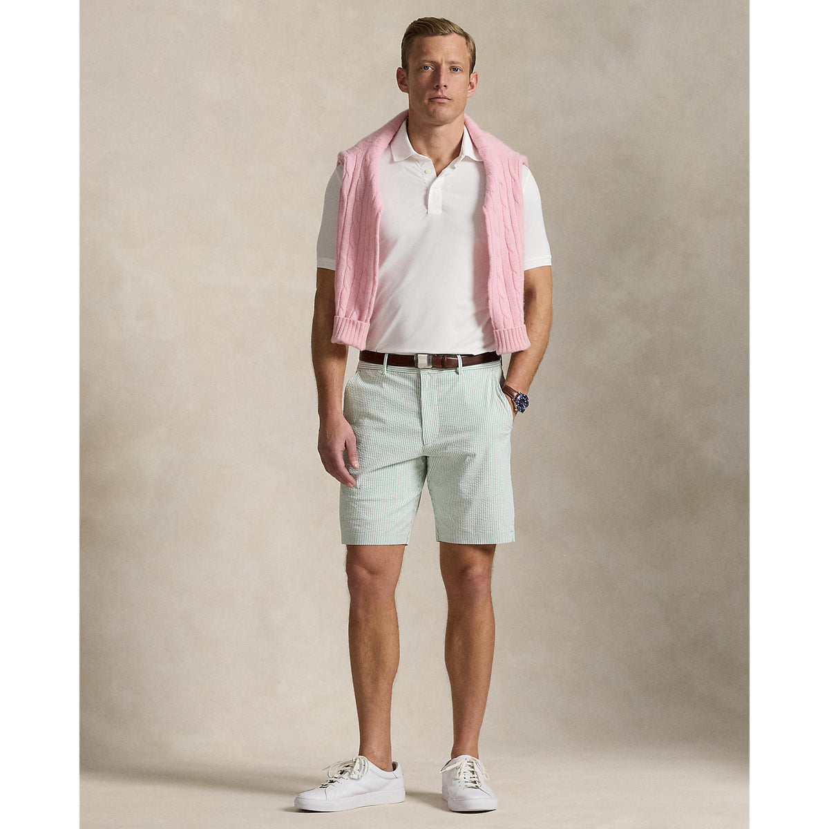-Tailored Fit: sleeve hugs the bicep. tailored through the waist. -Size medium has a 73.5 cm body length (front and back), a 45.5 cm shoulder and a 104 cm chest. -Rib-knit Polo collar. Three-button placket. Corozo buttons. -Short sleeves with Rib-knit armbands. -"RLX" on the right shoulder and centre back of the neck. -Even vented hem. -92% polyester, 8% elastane. -Machine washable. Imported.