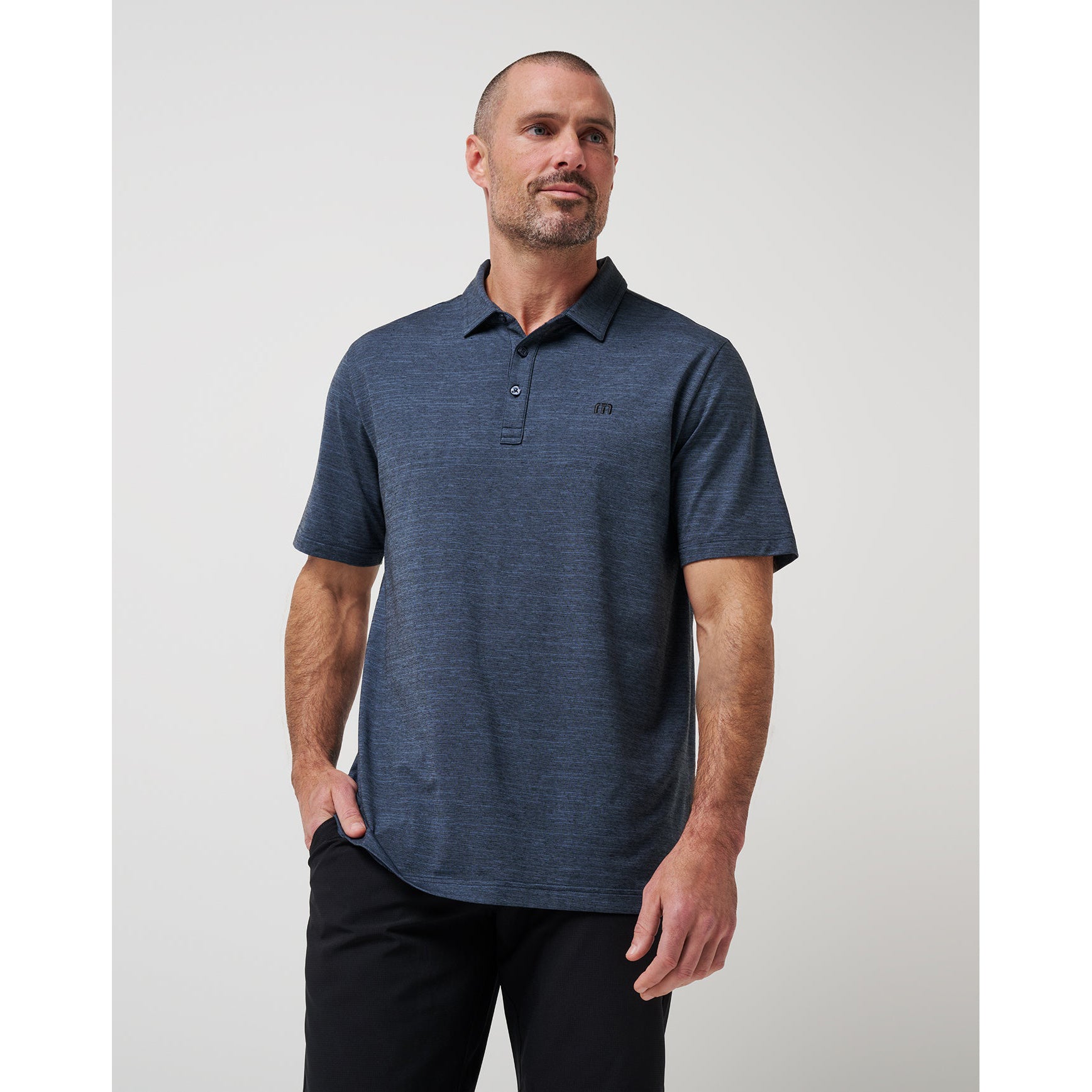 Travis Mathew Heater Pro Golf Polo Shirt - Vintage Indigo/Black