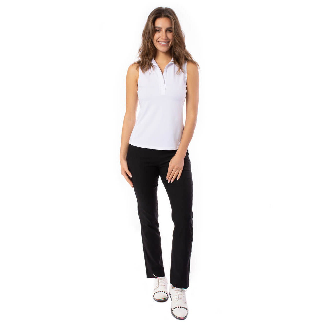 Golftini女子荷叶边无袖高尔夫球球可将女性风格与高性能功能相结合。这种吸湿的,无皱纹的马球由Stretchtech面料制成,使您在课程中保持凉爽和舒适。它带有带有隐藏按钮和公主接缝的荷叶边公园,提供了令人愉悦的轮廓,而UPF 30多个防晒效果可确保在阳光明媚的回合中覆盖。