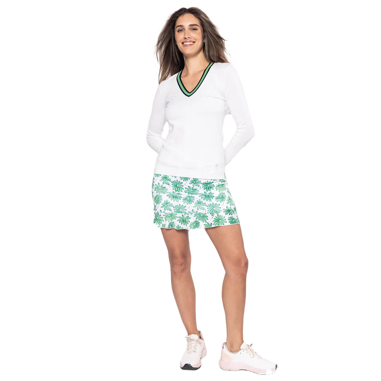 Golftini女士时尚V领毛衣 - 白色/凯利绿色