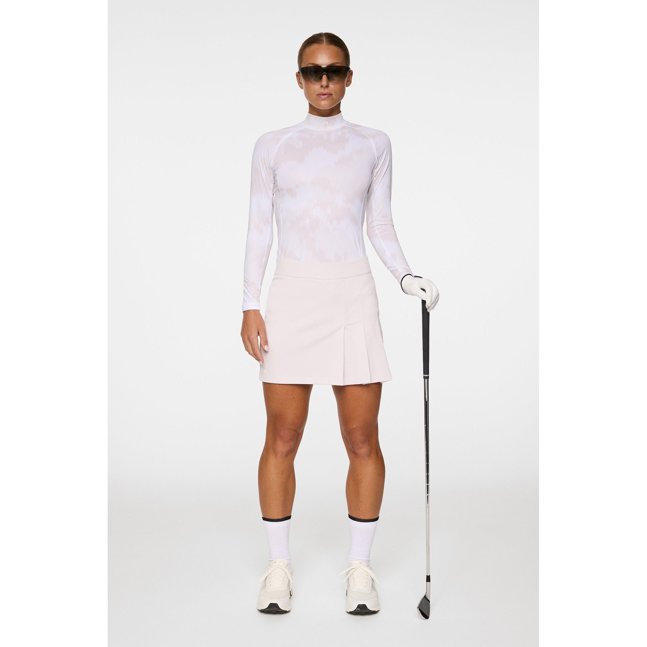 J.Lindeberg妇女Ella印刷压缩高尔夫衬衫 - 经纱灰丁香