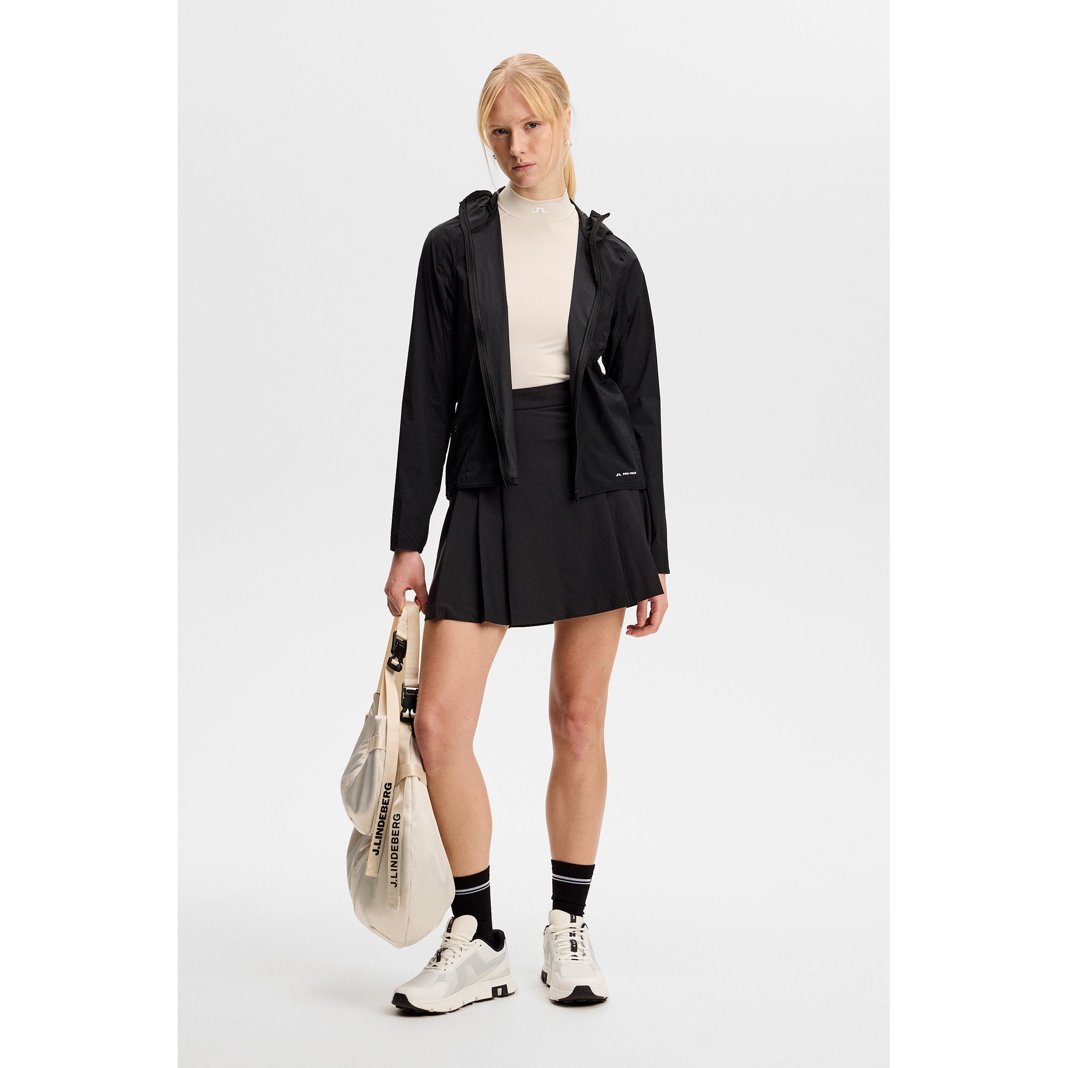 • 标志性品牌:正面中央有桥形徽标,袖子上有 J.LINDEBERG 文字,打造精致、性能主导的细节。