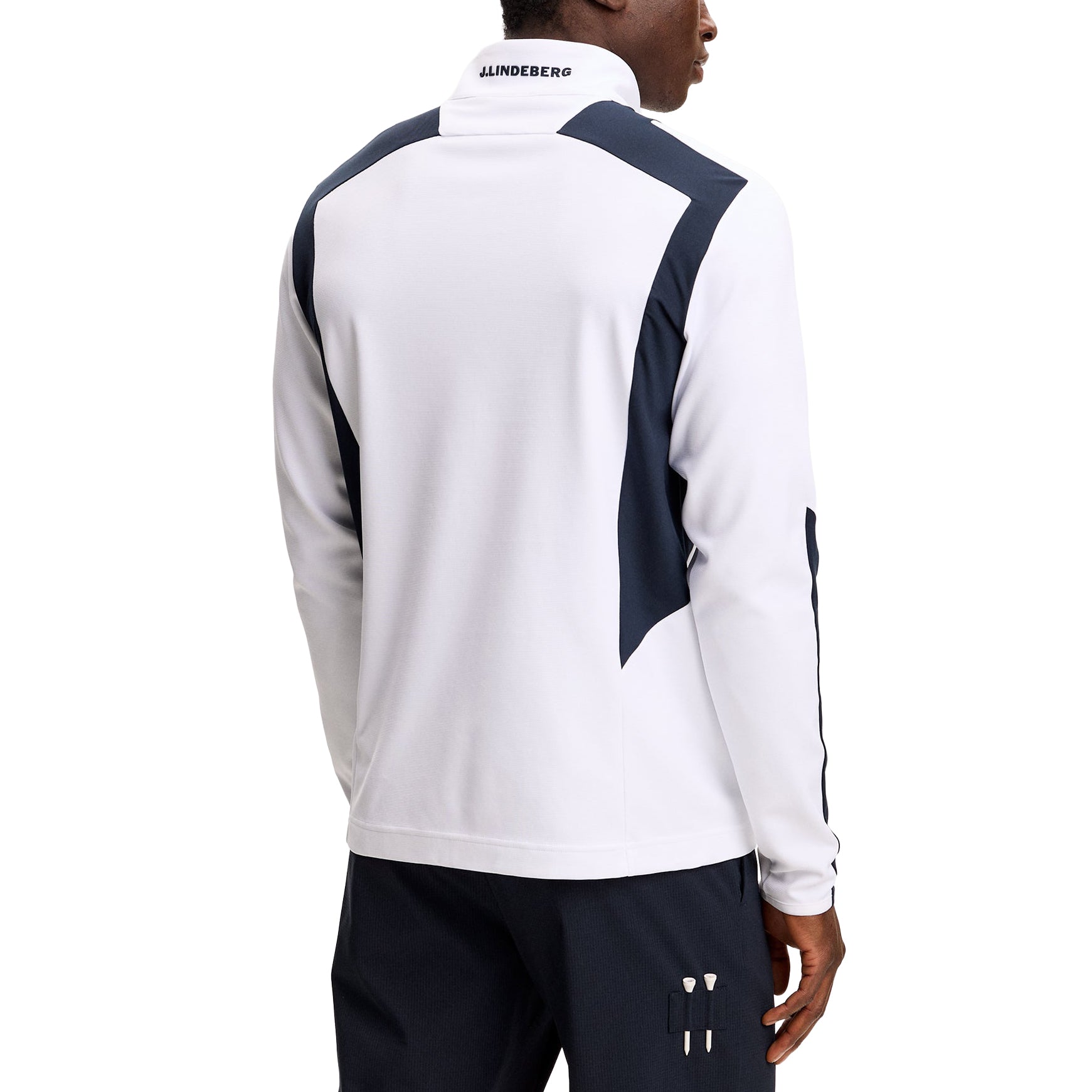 • 标志性品牌:胸前的桥形徽标彰显微妙的 J.LINDEBERG 身份。
