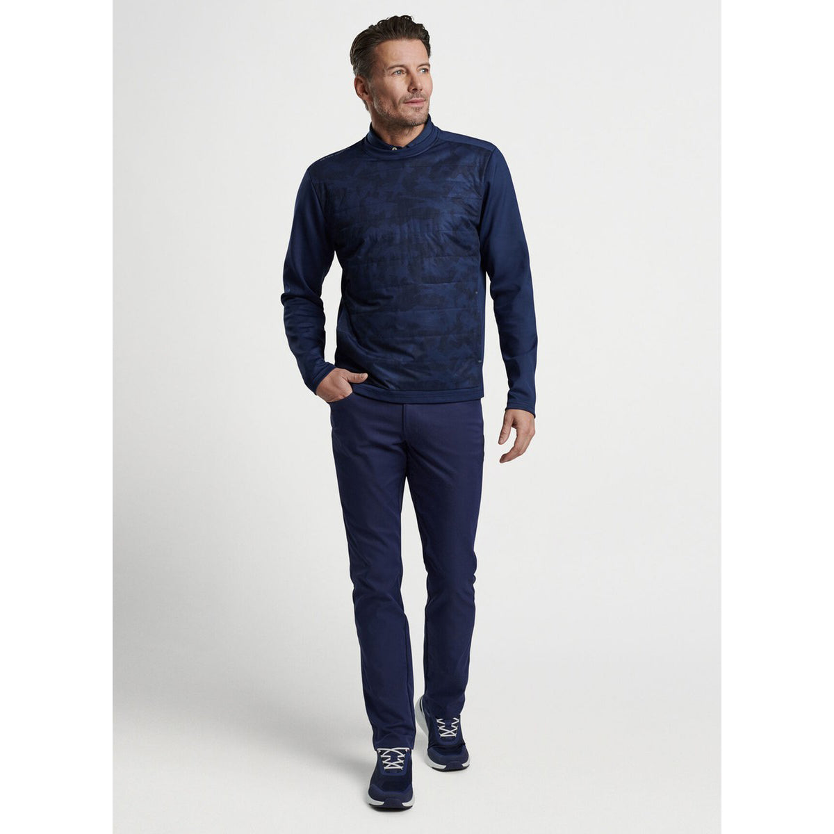 Bond Elite 圆领毛衣结合了轻型夹克和套头衫的优点,采用槽缝线、防风前幅和轻质隔热材料,在寒冷的日子里提供完美的温暖。它具有四向拉伸功能,可让您在挥杆过程中进行全方位的运动。配有低调的侧入插手口袋。