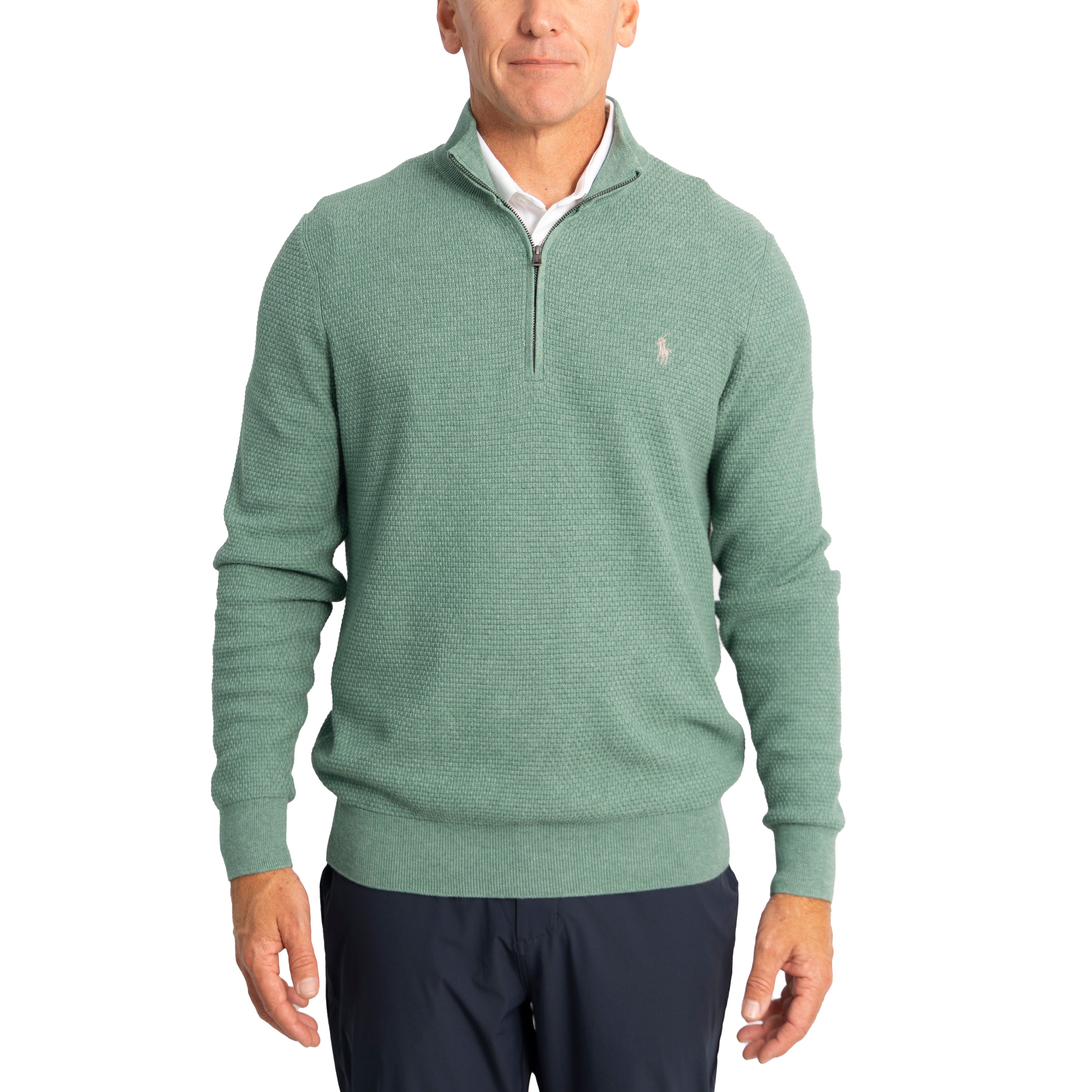 马球性能Ralph Lauren Coolmax 1/4 Zip-泽西绿色