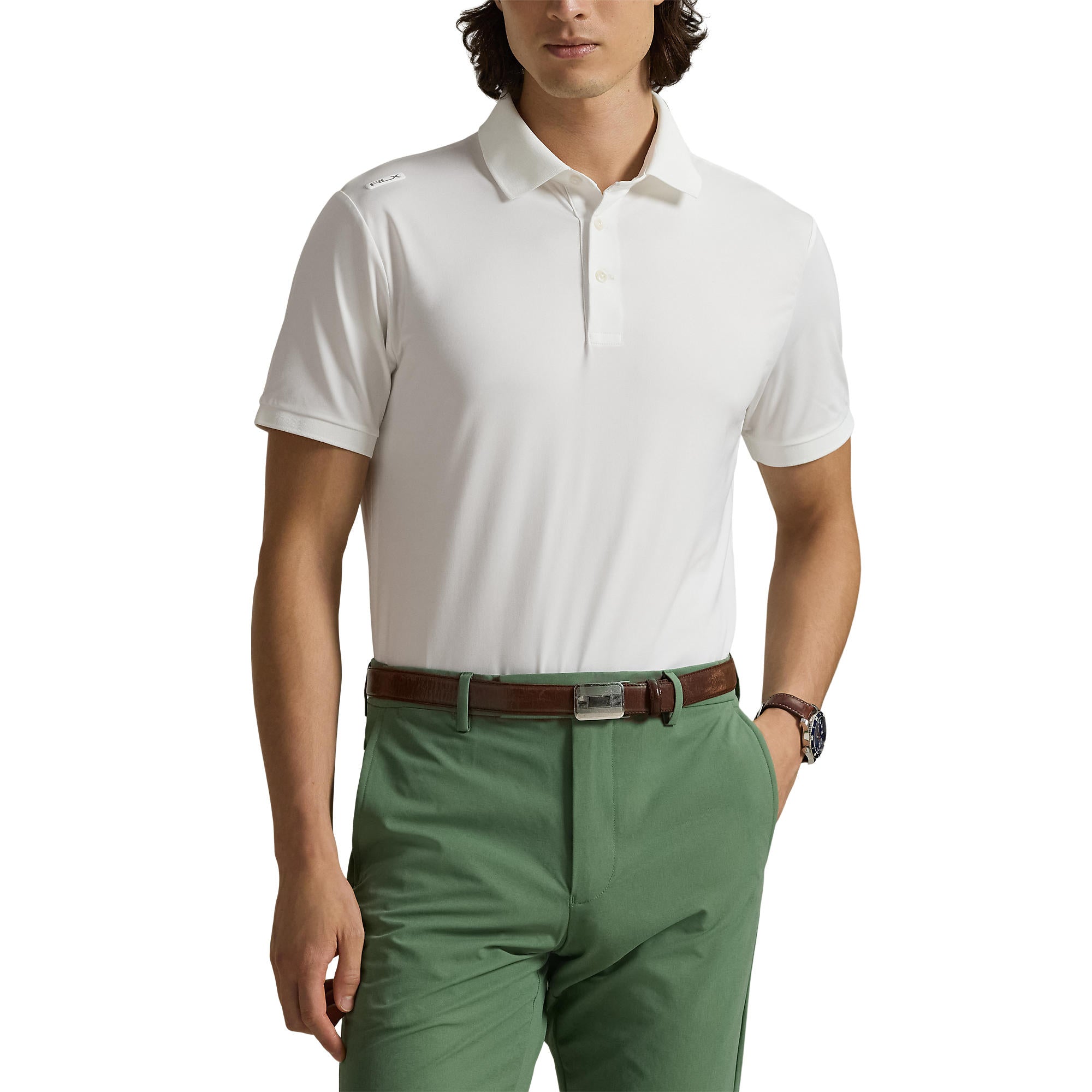This tailored fit Polo combines classic RLX style with modern performance. The lightweight stretch jersey moves with your body, while moisture-wicking properties and bespoke details ensure you stay cool, comfortable, and polished on the course or off.